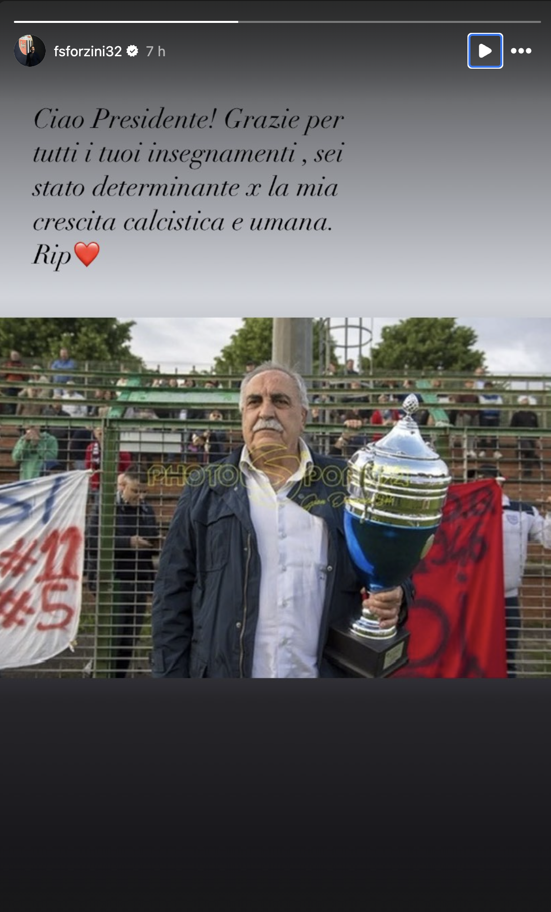 La storia Instagram dal profilo di Ferdinando Sforzini oggi direttore sportivo dell'Ascoli e cresciuto con la maglia del Tor di Quinto dopo una carriera come centravanti dalla Serie A alla Serie D