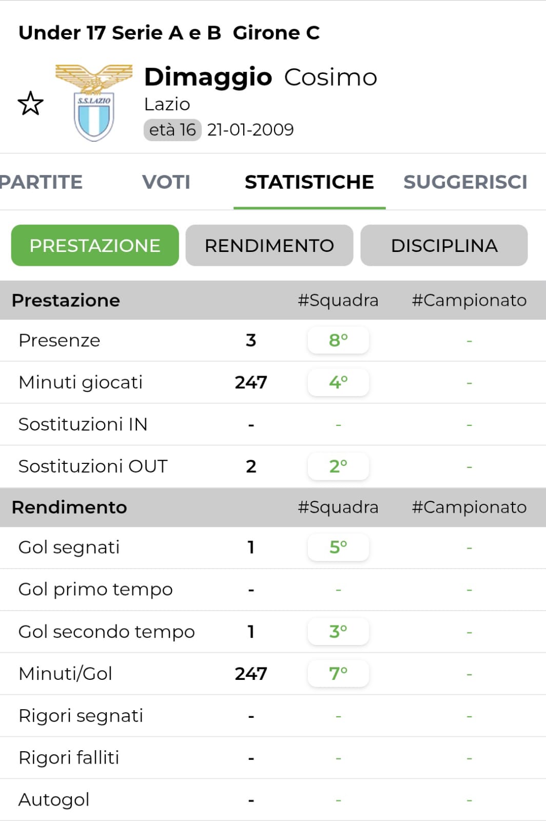 Cosimo Dimaggio - 2009 - Lazio