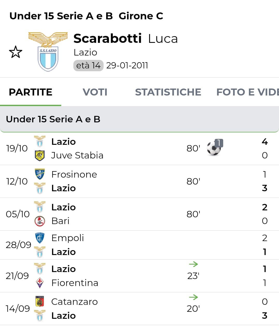 La Lazio di Fazi centra il terzo successo consecutivo rifilando un rotondo 4 a 0 alla Juve Stabia. Grande protagonista, ancora una volta, Bacchi che segna i primi due gol ma il migliore in campo è Luca Scarabotti. Il terzino, sempre in campo nelle ultime tre gare, recupera un’infinità di palloni ribaltando spesso l’azione con grande personalità. Nel secondo tempo, mette la ciliegina sulla torta calando il poker con uno splendido mancino a giro.