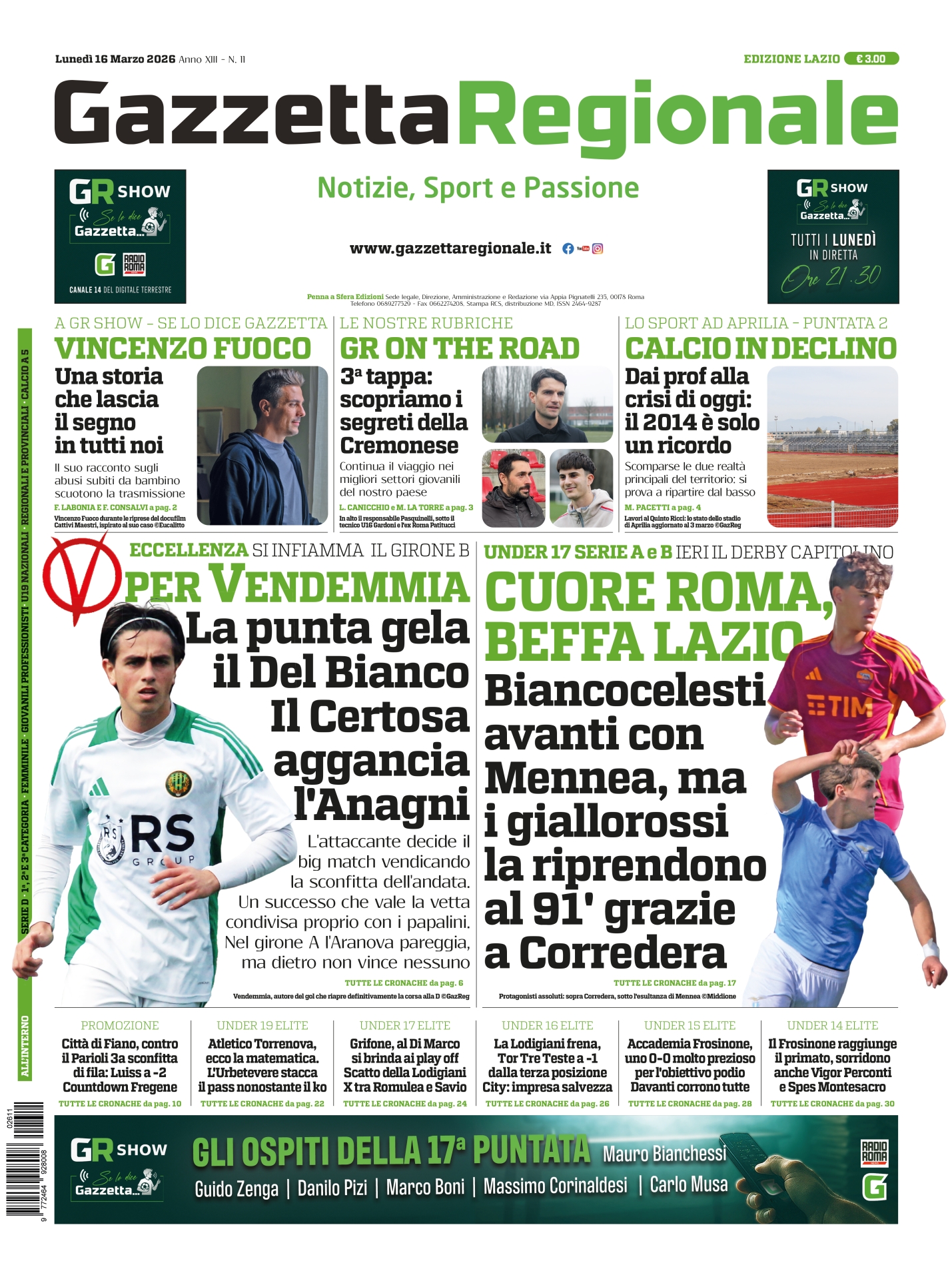 Inizia una nuova settimana e Gazzetta Regionale torna in edicola per raccontarvi tutto quello che è successo nell'ultimo weekend calcistico e non solo.