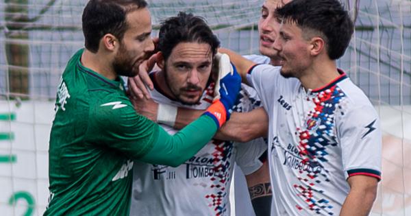 Spila abbracciato: ha segnato l'1-1 della Folgore (Foto ©Martini)