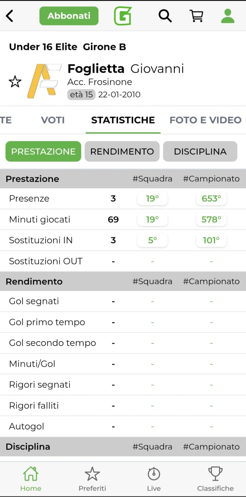 Girone B - Giovanni Foglietta, Accademia Frosinone