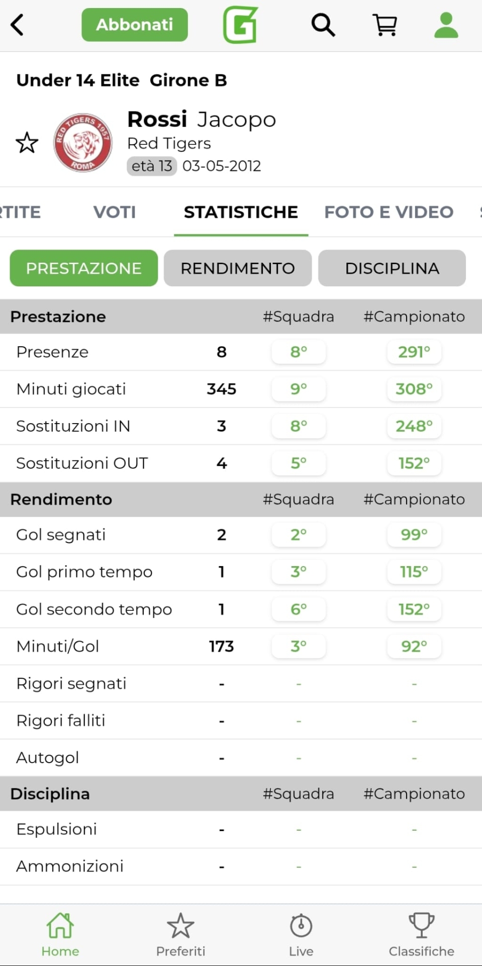 Dati, statistiche, profili giocatore, panoramica squadra, Top 5+1 e molto altro ancora:
