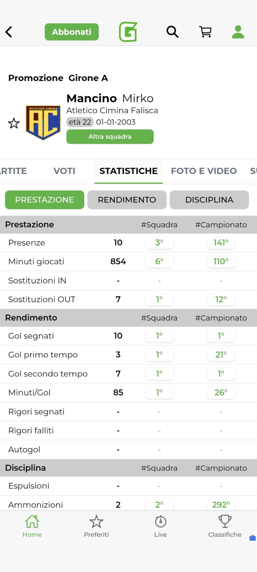Mirko Mancino, Atletico Cimina, attaccante 2003