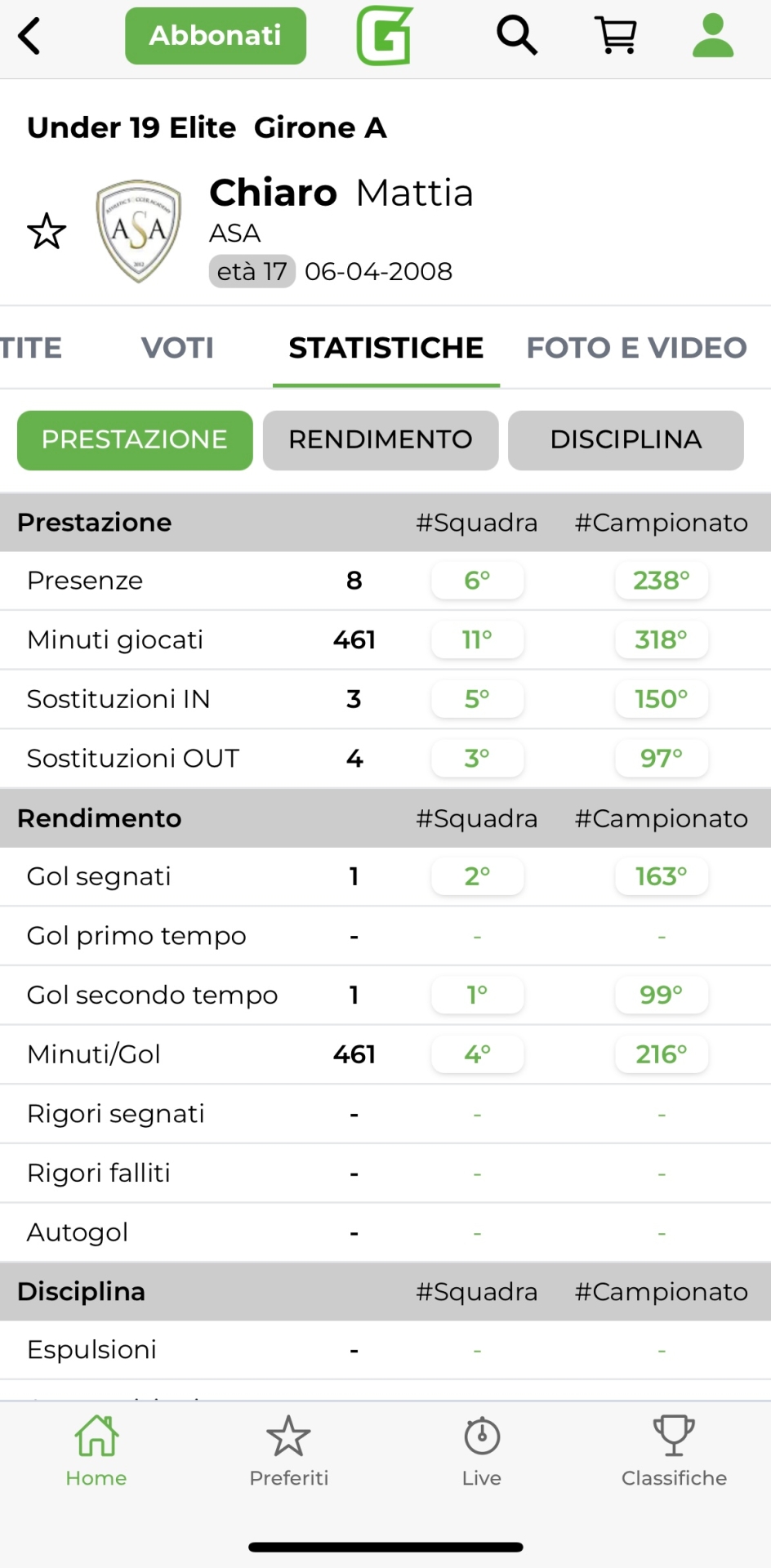 Mattia Chiaro, Asa - Girone A