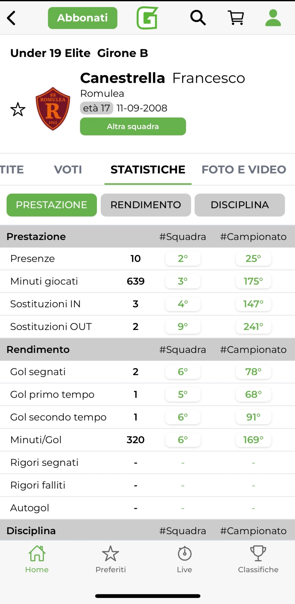 Francesco Canestrella, Romulea - Girone B
