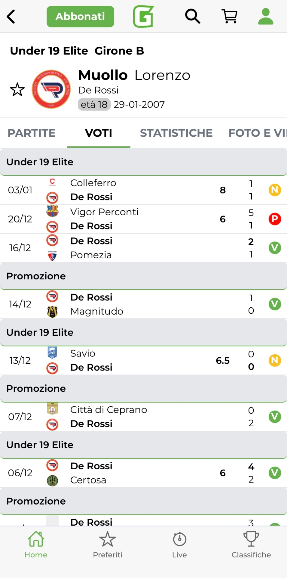 Lorenzo Muollo, De Rossi - Girone B