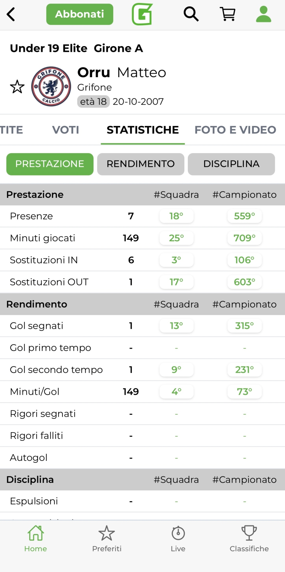 Matteo Orru, Grifone - Girone A