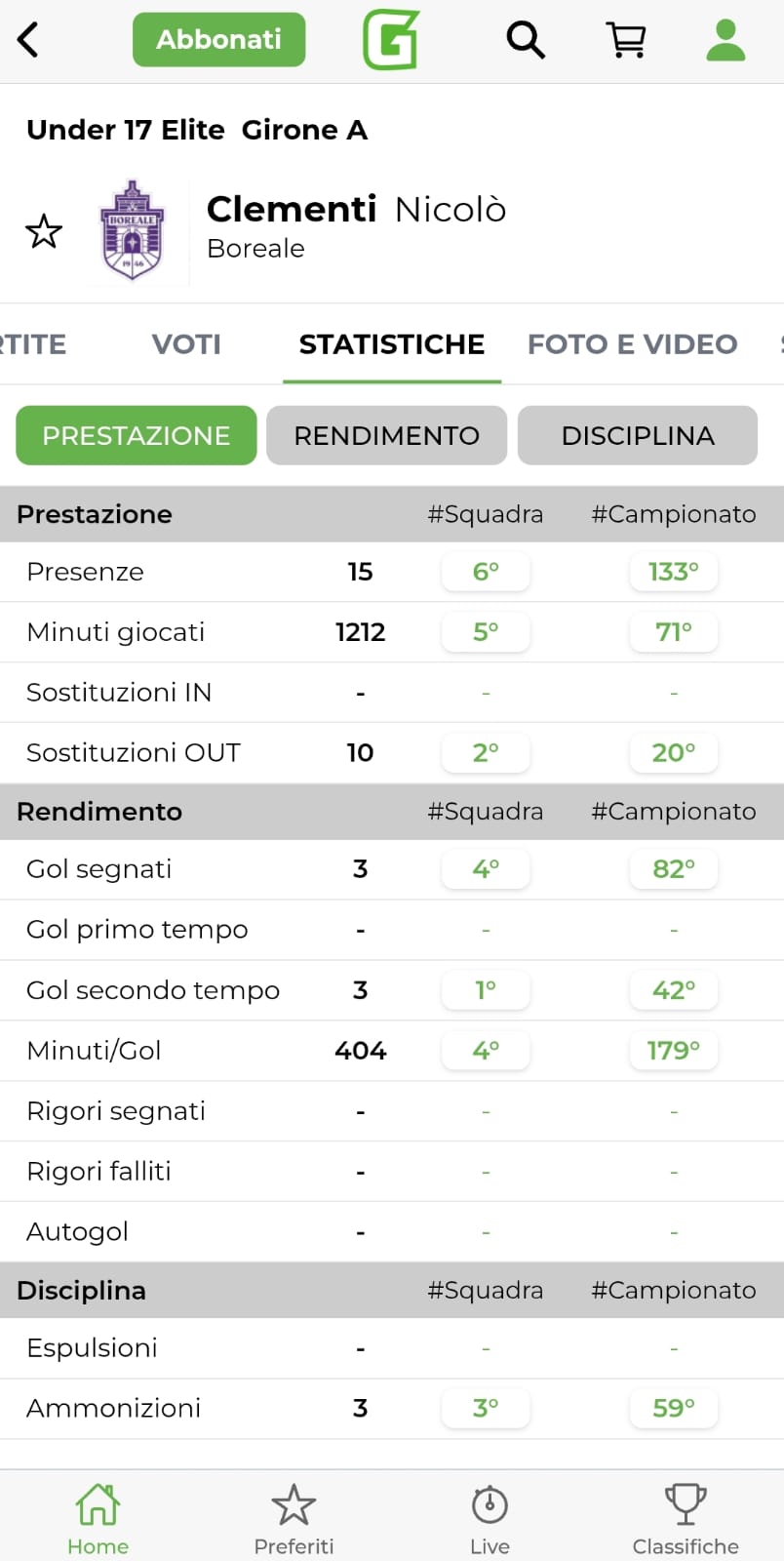 Nicolò Clementi, Boreale - Girone A