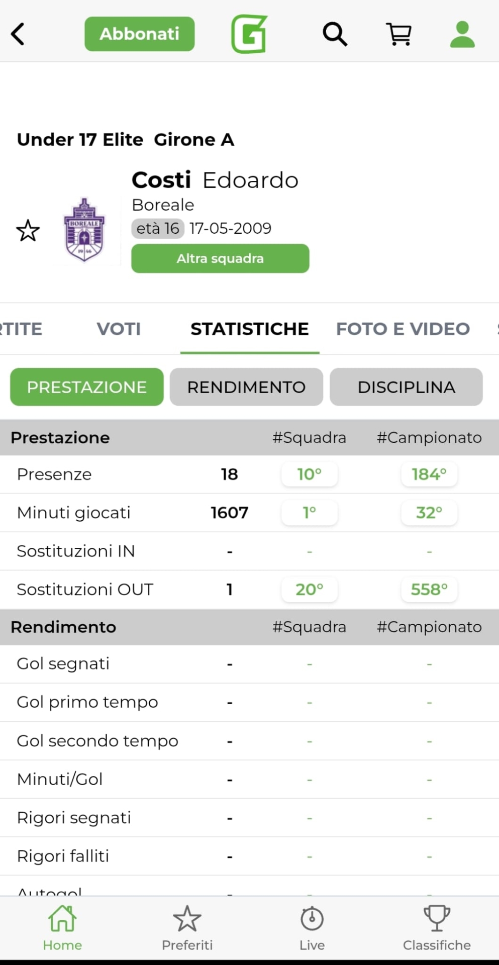 Unica partita del weekend senza reti. Il motivo? Edoardo Costi al 20' del secondo tempo para il calcio di rigore a Bernardini dell'Ottavia ed evita la sconfitta dei suoi. Migliore in campo ovviamente, la Boreale conquista un punto che li tiene ancora lontana dalla zona playout. Edoardo è uno dei protagonisti ed il suo rendimento servirà sicuramente per centrare a pieno la salvezza.