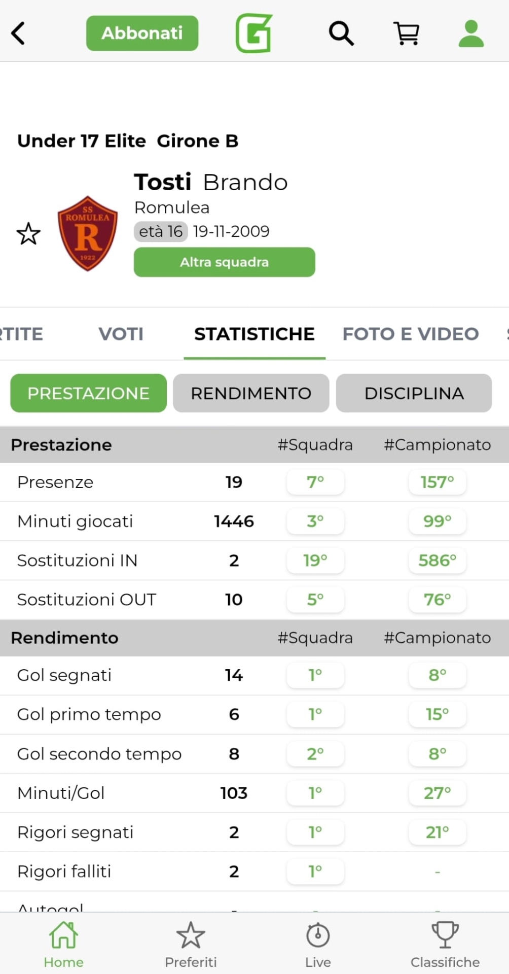 Brando Tosti, Romulea - Girone B