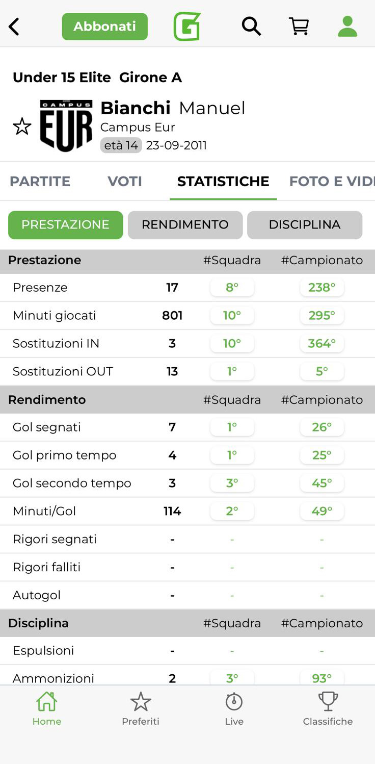 Dati, statistiche, profili giocatore, panoramica squadra, Top 5+1 e molto altro ancora: