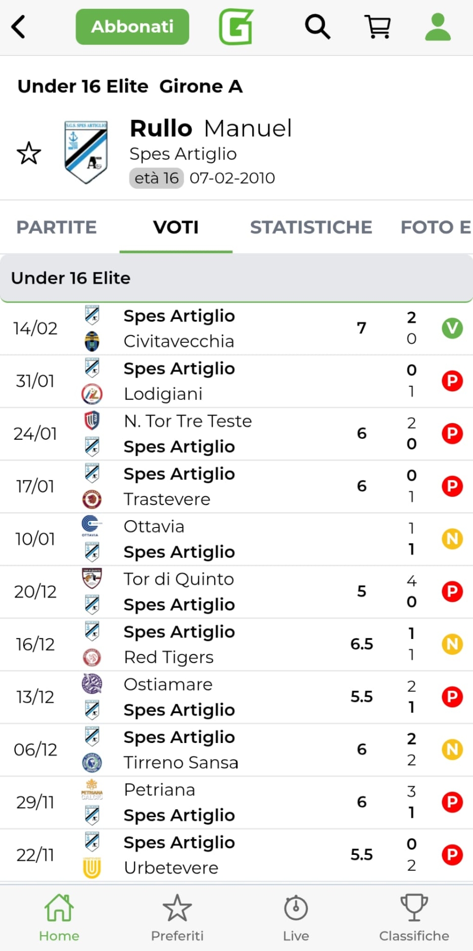 Girone A - Manuel Rullo, Spes Artiglio