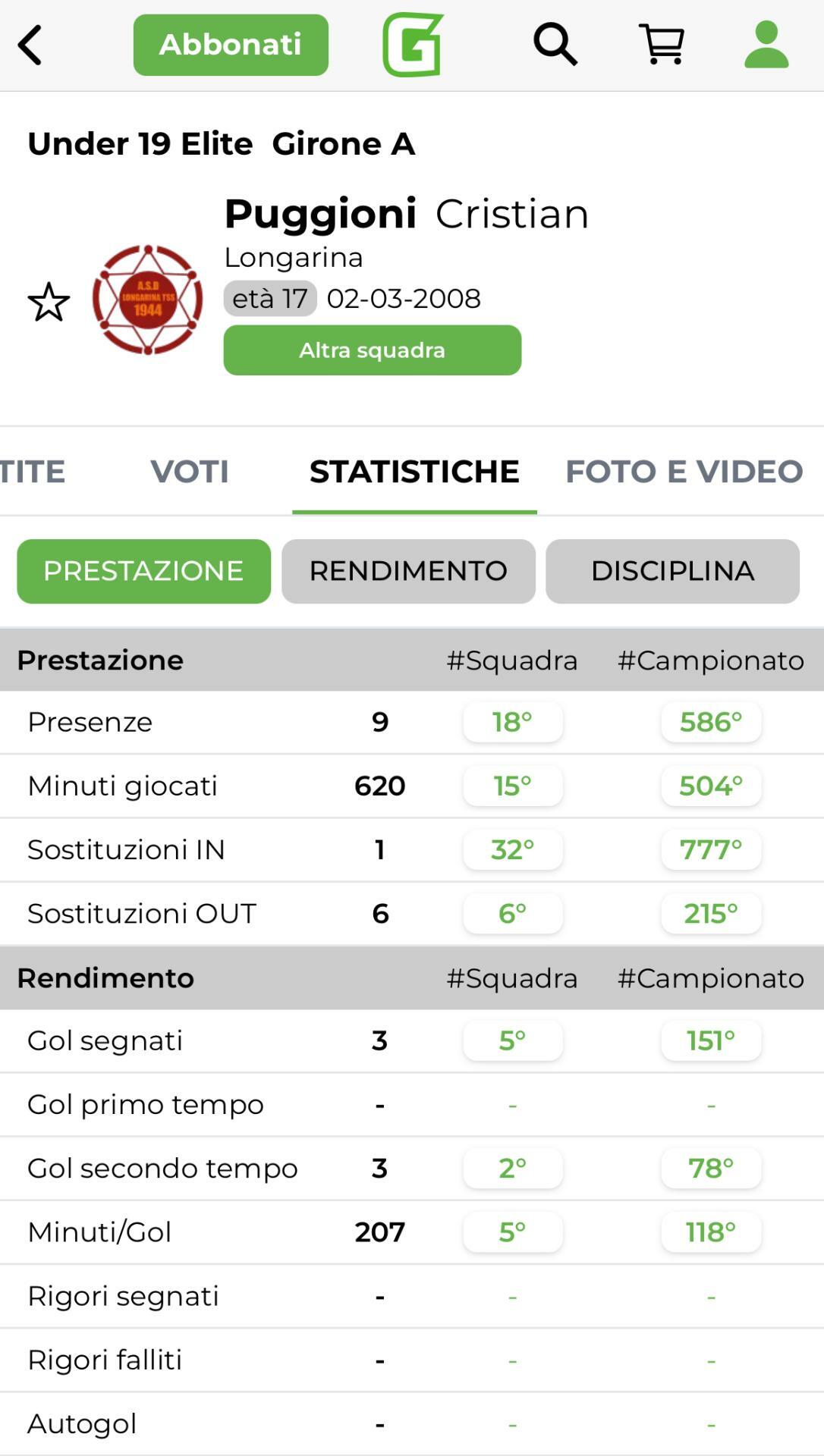 Cristian Puggioni, Longarina - Girone A