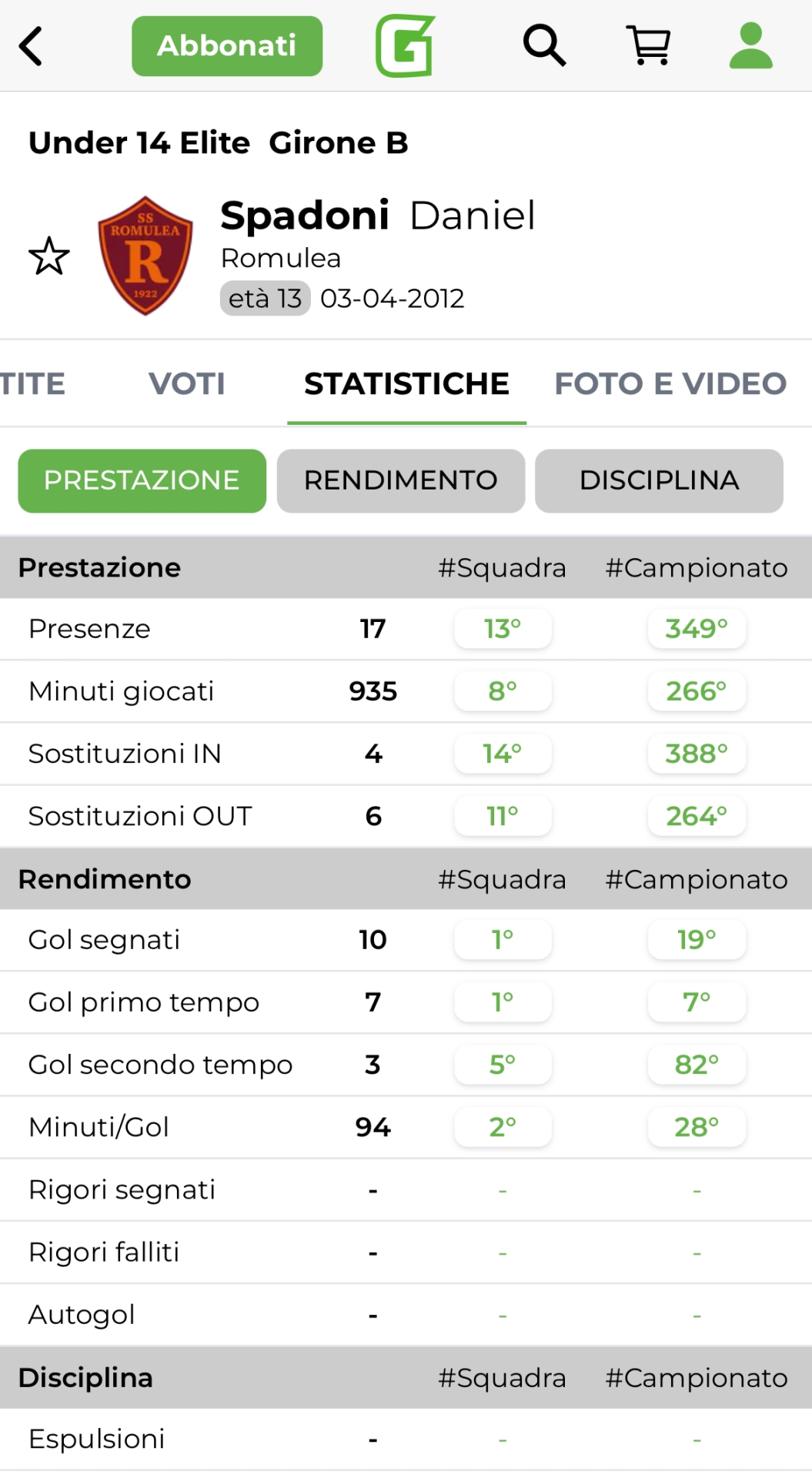 Daniel Spadoni, Romulea - Girone B