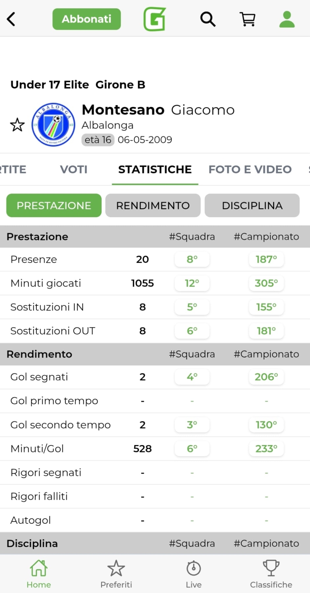 Giacomo Montesano, Albalonga - Girone B