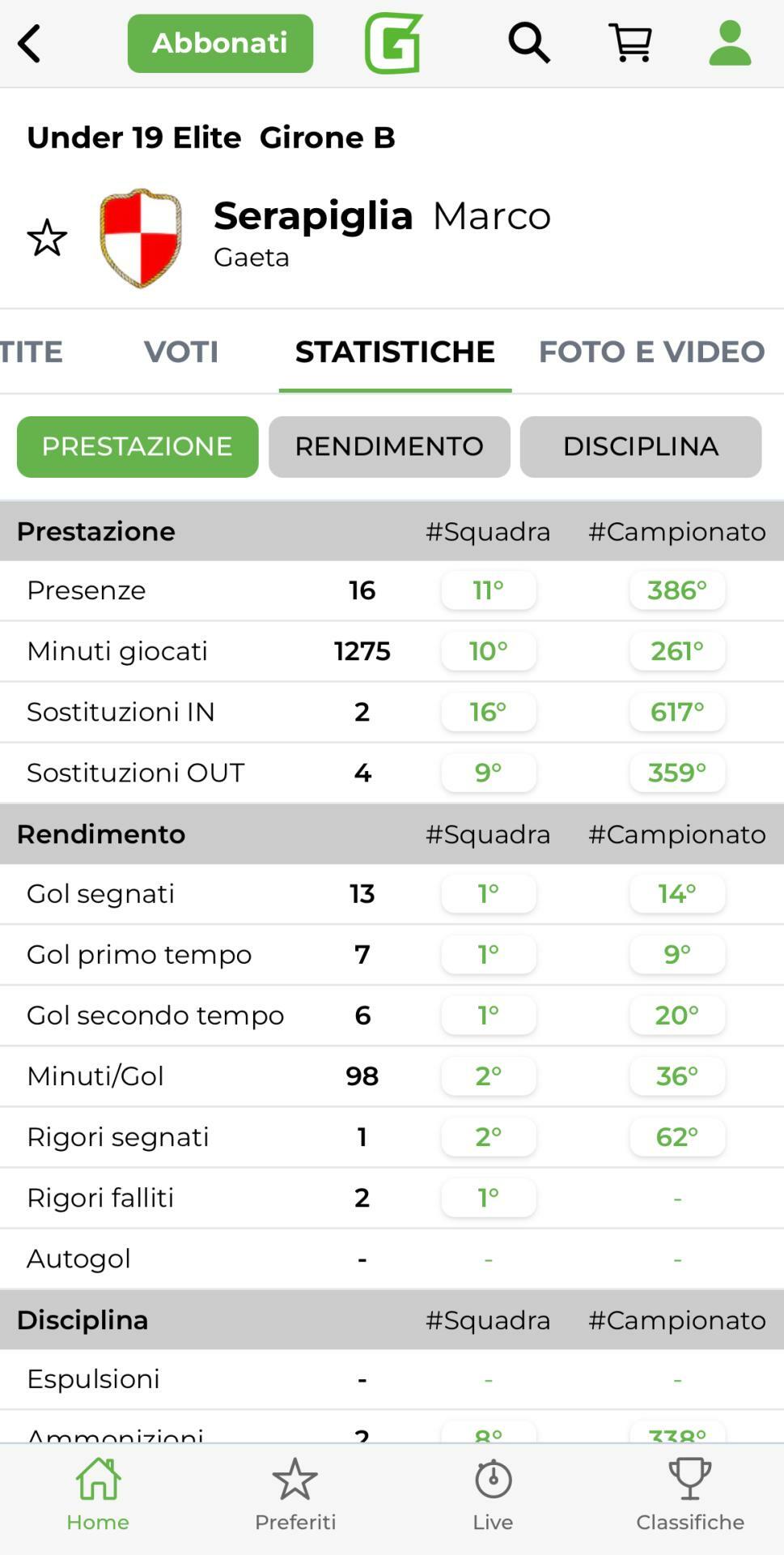 Prestazione monstre da parte dell'attaccante biancorosso nell'ultimo turno. Il Gaeta era chiamato a vincere quasi obbligatoriamente, per creare il distacco necessario al momento per la salvezza diretta. L'interprete locale contro la Pro Calcio Cecchina ha dunque deciso di trascinare a suon di gol i suoi. Nell'arco dei 90' sono addirittura 5 le reti messe a segno, al termine di un match che l'ha visto recitare come assoluto attore principale.