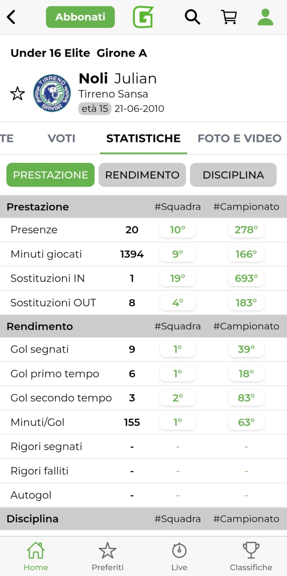 Dati, statistiche, profili giocatore, panoramica squadra, Top 5+1 e molto altro ancora: