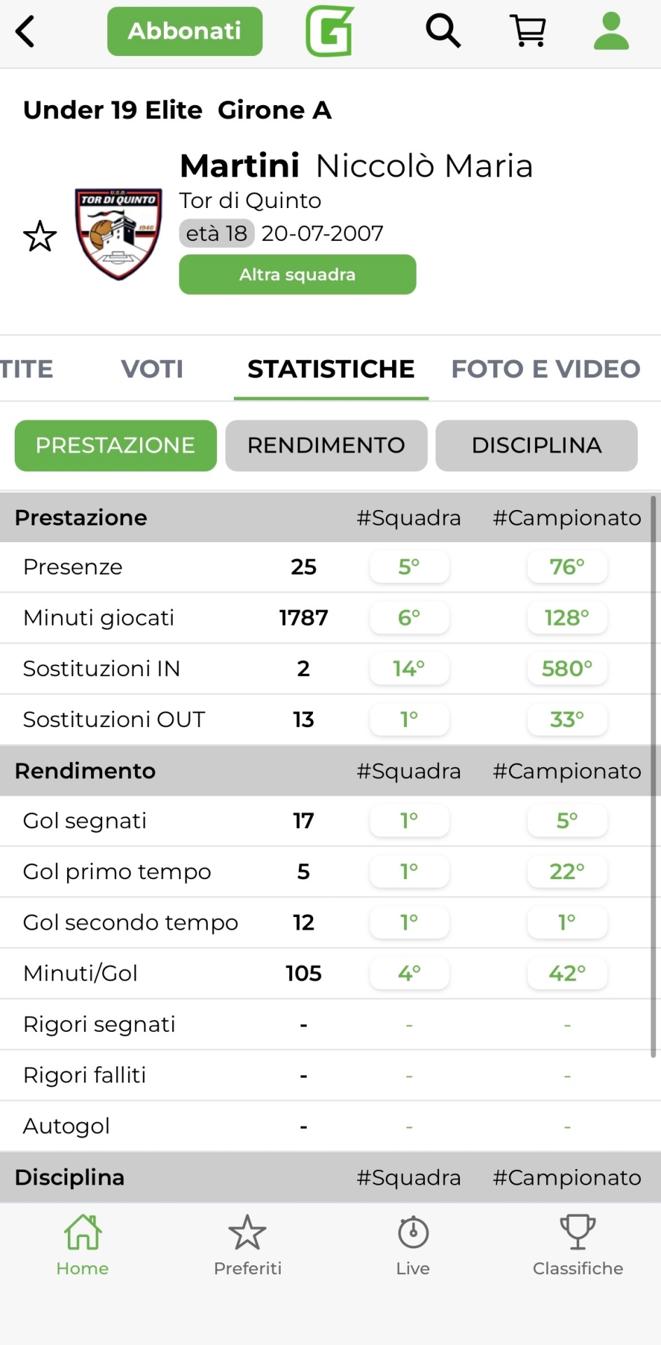 Ancora una volta l'attaccante rossoblù si mette in mostra. Il Tor di Quinto, travolgendo il Vittoria Roma ed approfittando al meglio del passo falso dell'Urbetevere ha riaperto la corsa al vertice. Un sabato da sogno per la formazione del Testa, che tra le proprie mura ha espresso tutta la propria supremazia nei confronti dei giallorossi. Ancora una volta decisiva la prova di Martini, autore di una tripletta. Score che esalta ancor di più il classe 2007.