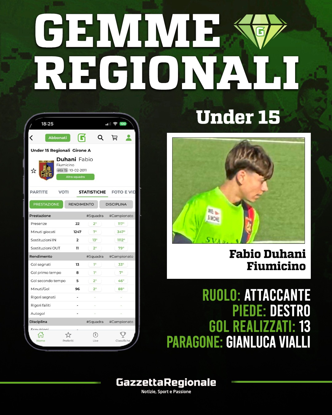 Il Fiumicino si gode l’ascesa di Fabio Duhani, un profilo che nell'Under 15 sta facendo la differenza grazie a una struttura fisica imponente e una versatilità tattica fuori dal comune. Capace di agire sia come punta centrale che come esterno, Duhani combina la forza nello stretto con una progressione dirompente sul lungo.