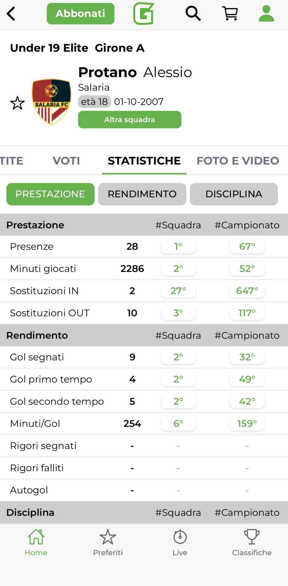 Prestazione da assoluto protagonista per il classe 2007. Protano è autore di una splendida doppietta nel successo dei suoi ai danni della Tor Tre Teste. Un pokerissimo che ha decretato la salvezza diretta dei rossoblù. Già nel primo tempo va vicinissimo al gol, ma è nella ripresa che si scatena, mettendo a referto le due reti che hanno di fatto messo il lucchetto ai tre punti.