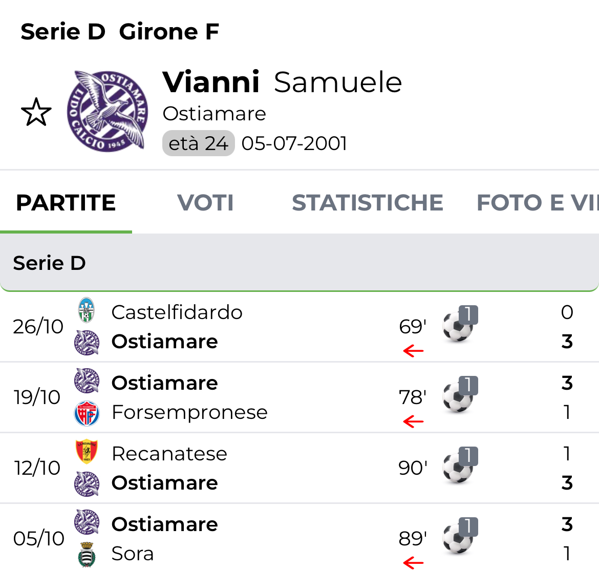 Sarebbe inutile spendere altre parole su questa Ostiamare: 9 vittorie su altrettante gare disputate, 27 punti in classifica e primato a +5 dall'Ancona. Tutto estremamente perfetto, soprattutto se ci aggiungiamo i 20 gol fatti e i soli 5 subiti, che rendono i lidensi i migliori sia in fase realizzativa che difensiva. Superata anche la pratica Castelfidardo, la squadra di David D'Antoni vuole viaggiare spedita più che mai, conscia del fatto che domenica, all'Anco Marzio, arriverà un ostacolo non da poco: il Teramo. Sarà quella sfida a dirci tanto in merito ai biancoviola, che affronteranno l'altra compagine ancora imbattuta del girone. Una cosa però e certa: i Gabbiani possono puntare su un attaccante, arrivato quasi in punta di piedi.