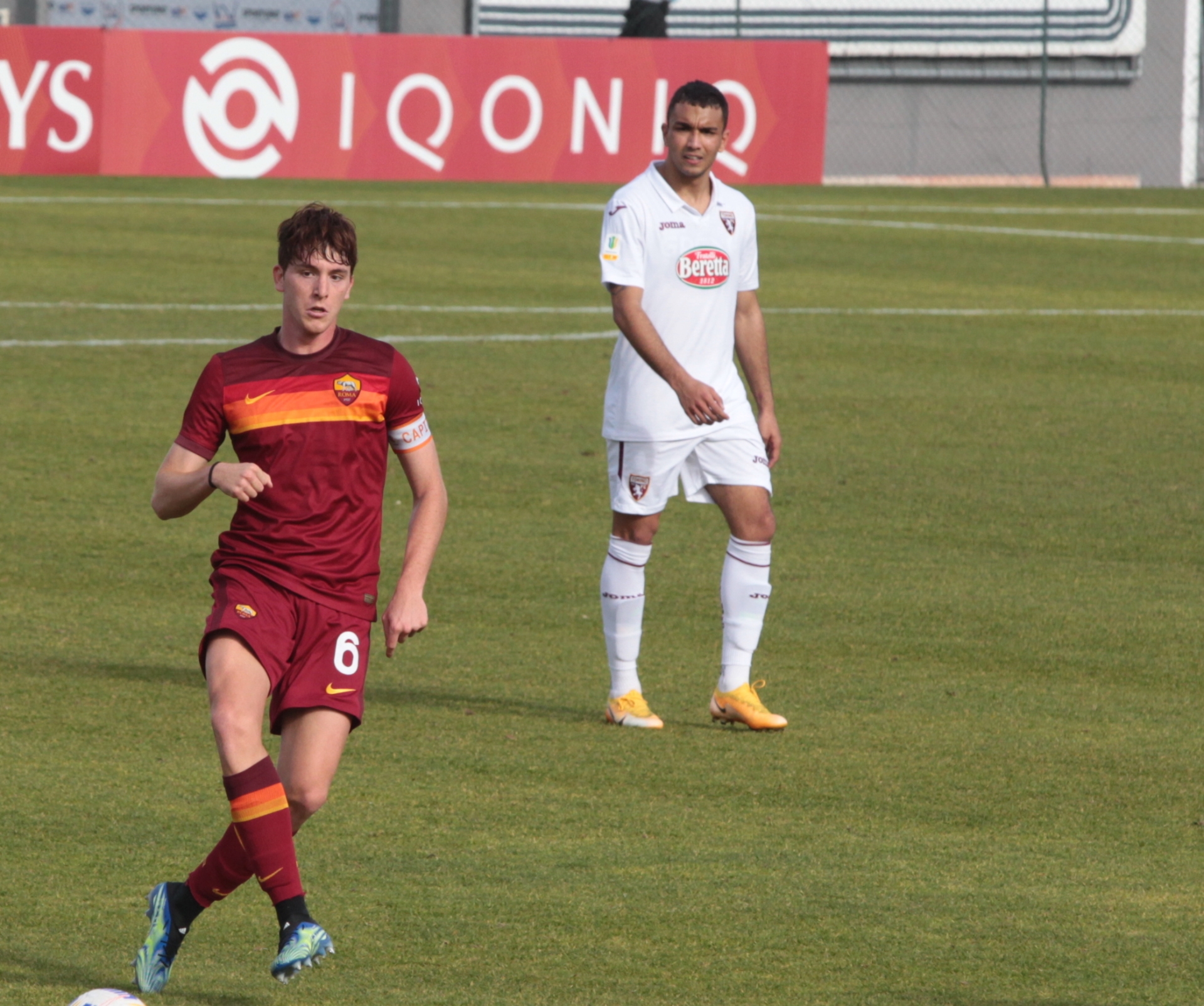 Samuele Vianni (sullo sfondo) ai tempi del Torin durante un match a Trigoria contro la Roma Primavera (©De Cesaris)