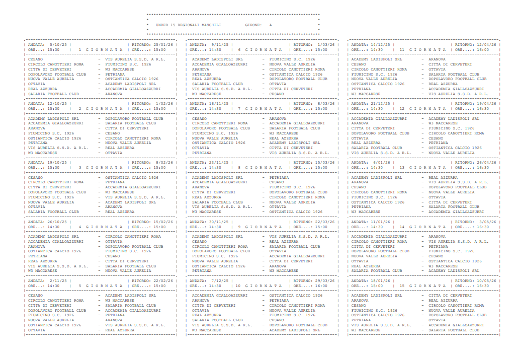 Ufficiali i calendari di Under 15 Regionali (Foto ©Cinelli)
