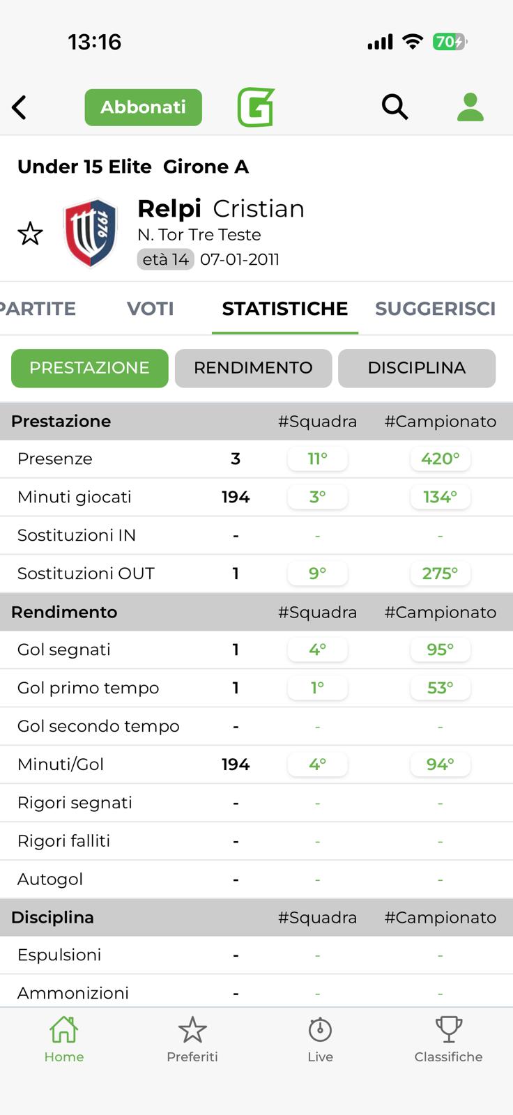 Dati, statistiche, profili giocatore, panoramica squadra, Top 5+1 e molto altro ancora: