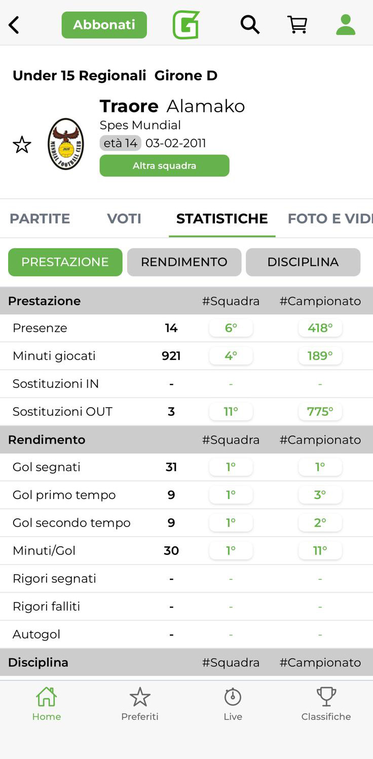 Dati, statistiche, profili giocatore, panoramica squadra, Top 5+1 e molto altro ancora: