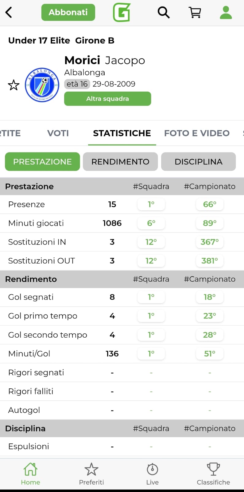 Dati, statistiche, profili giocatore, panoramica squadra, Top 5+1 e molto altro ancora: